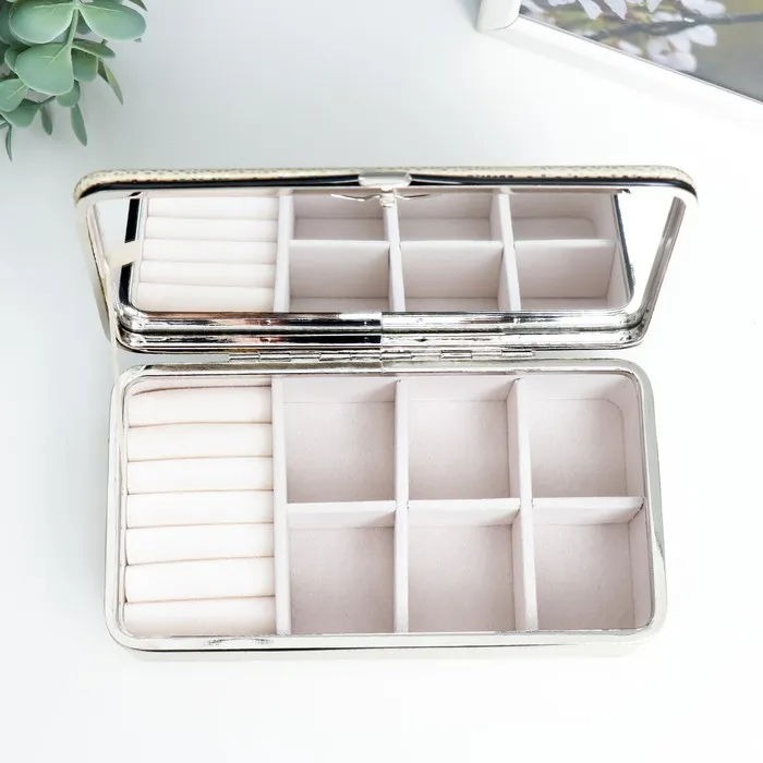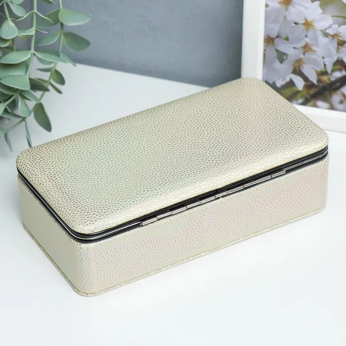 Шкатулка кожзам для украшений "Маленькие пятнышки. Золото голография" 6х9,8х18,5 см — Характеристики
