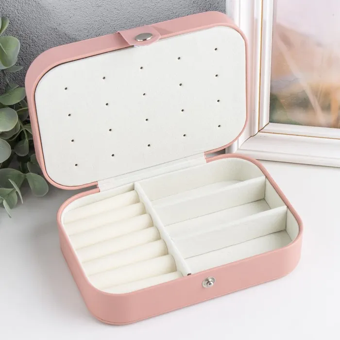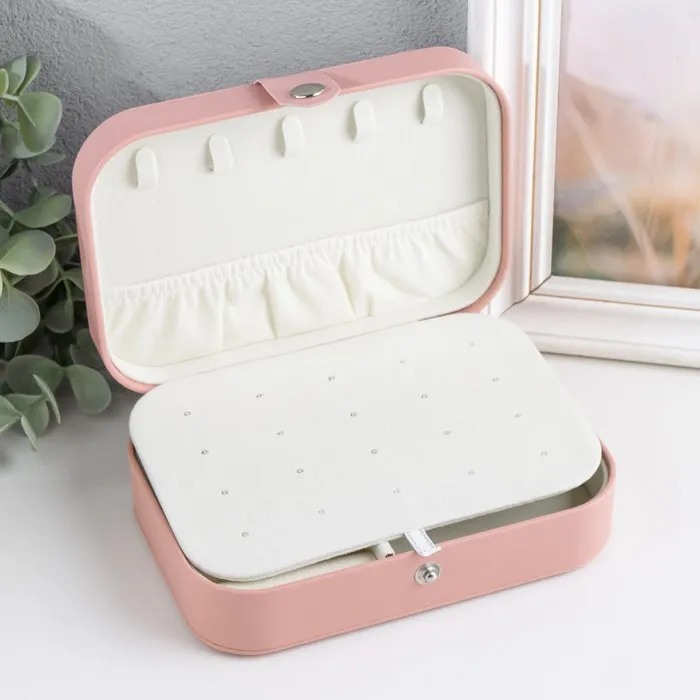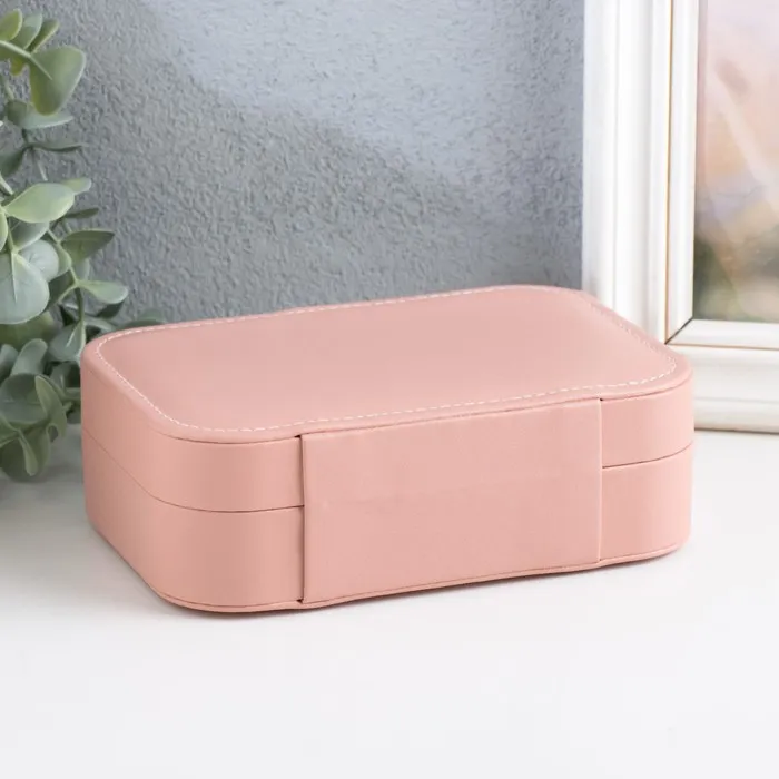 Шкатулка кожзам для украшений "Матовая гладь" розовая пудра 16х11х5 см — Характеристики