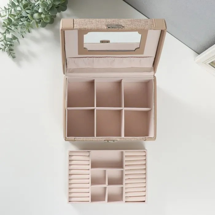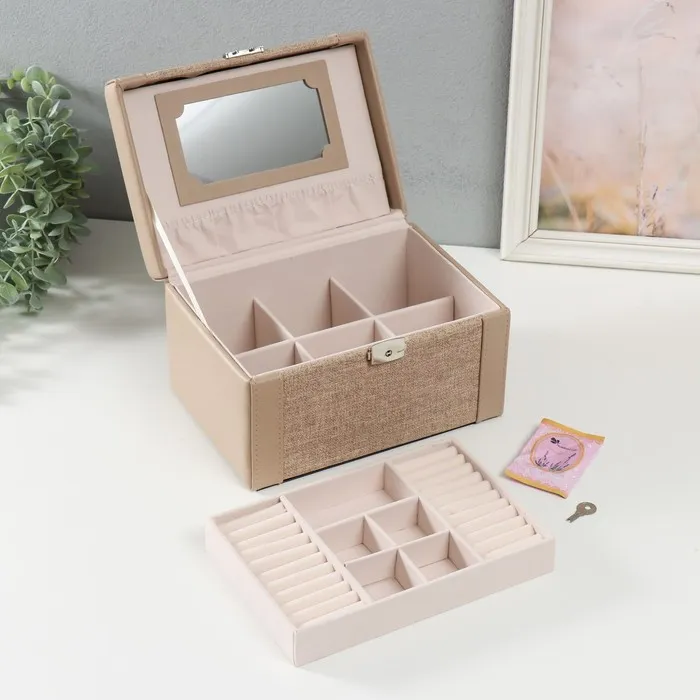 Шкатулка кожзам для украшений сундук "Молочная" комбинированная 23,5х16,5х14,5 см — Характеристики