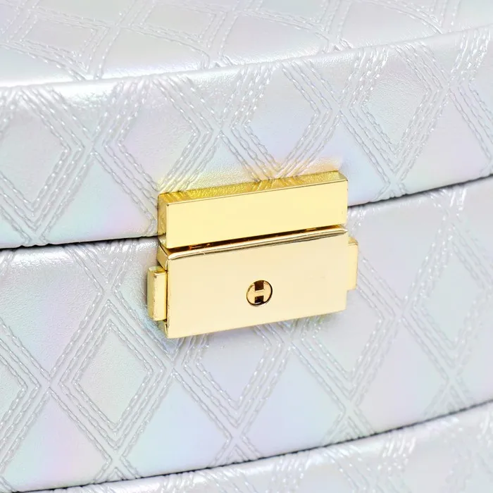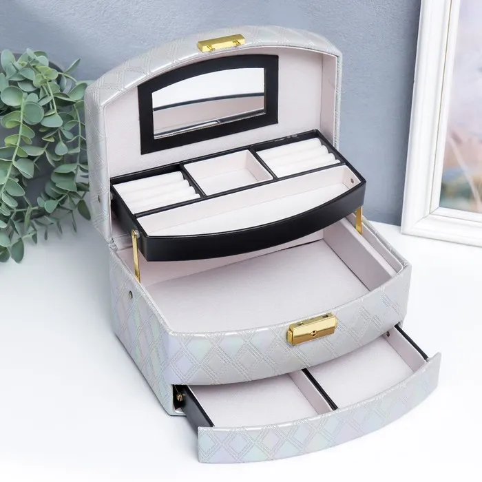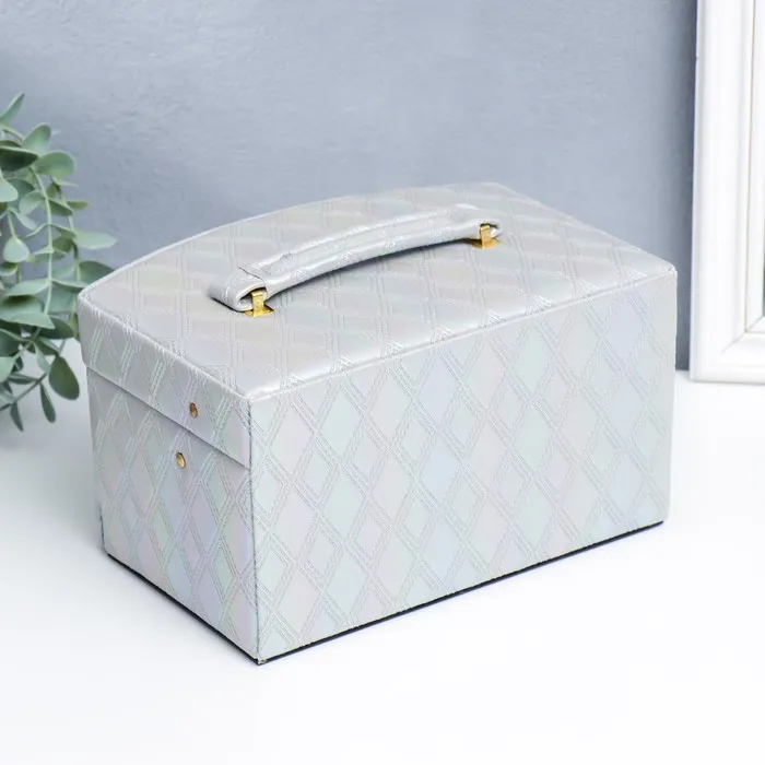 Шкатулка кожзам для украшений сундук "Сеть из ромбов. Серебро перламутр" 13х16х23 см — Характеристики