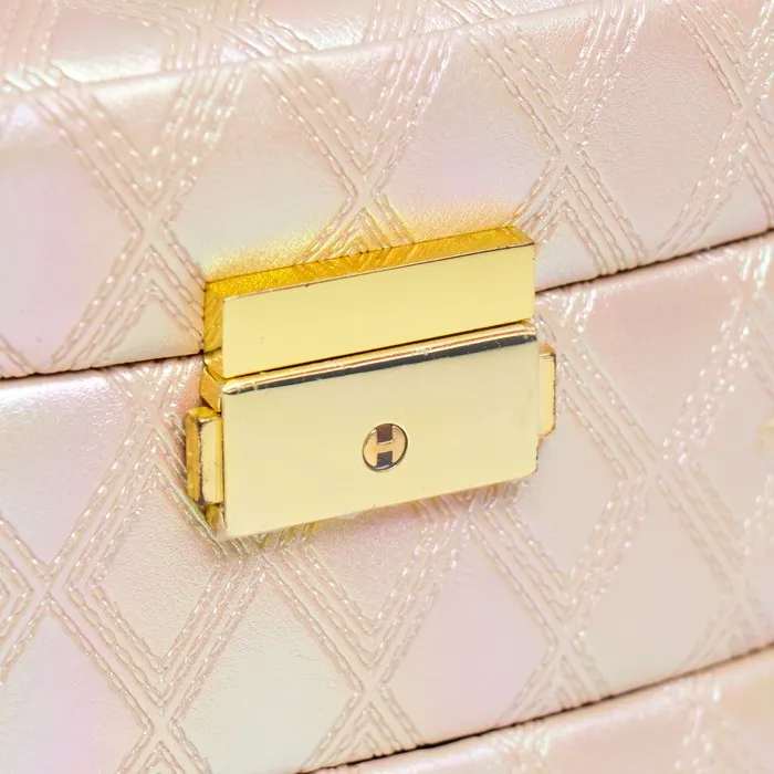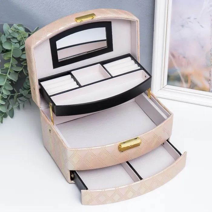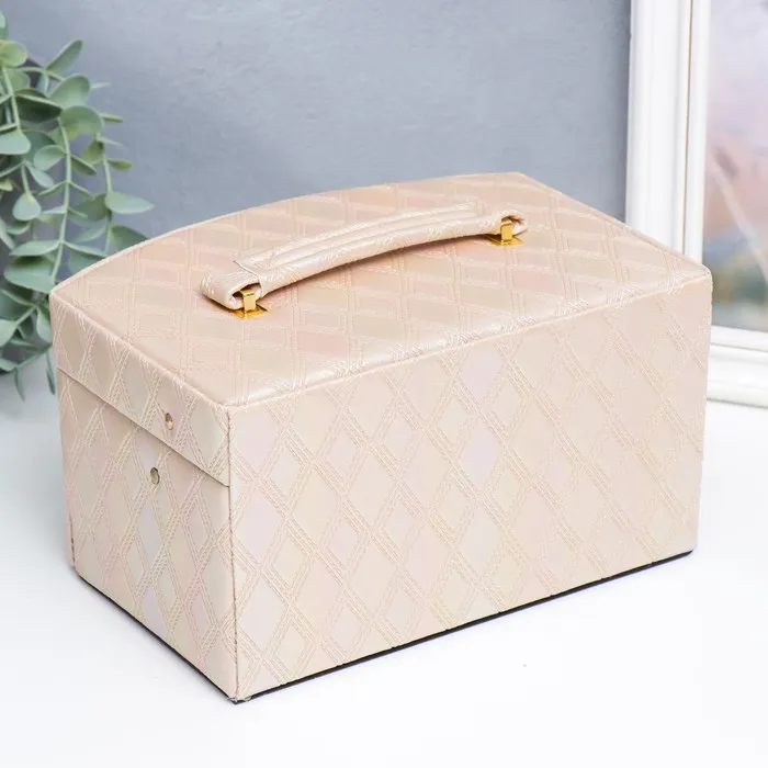 Шкатулка кожзам для украшений сундук "Сеть из ромбов. Сливочный перламутр" 13х16х23 см — Характеристики