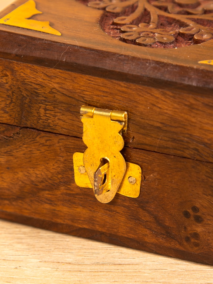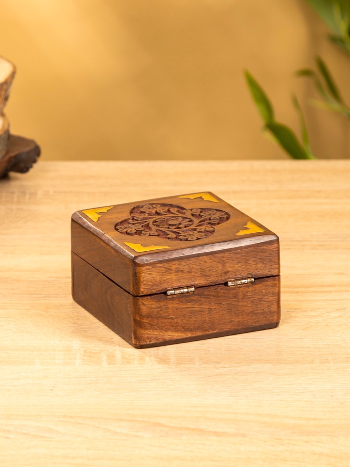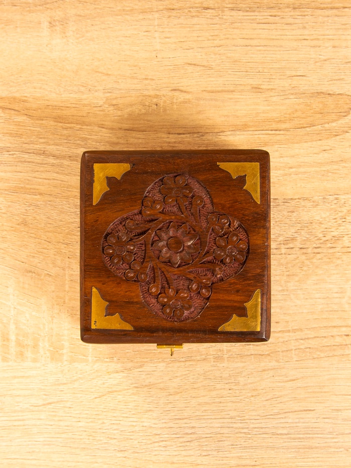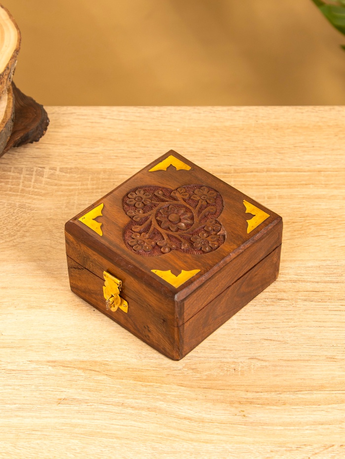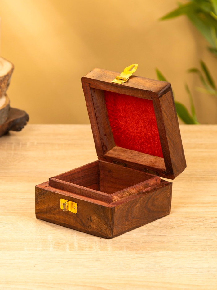 Шкатулка квадратная с замочком, 10×10×6 см, дерево шишам, латунь — Характеристики