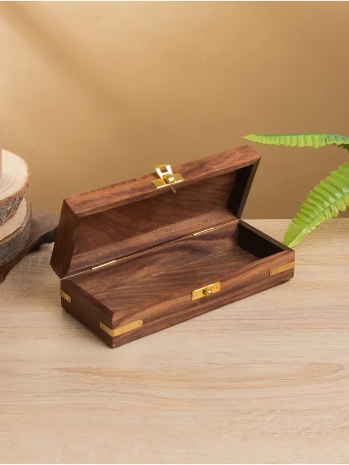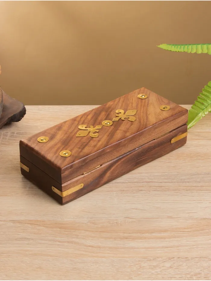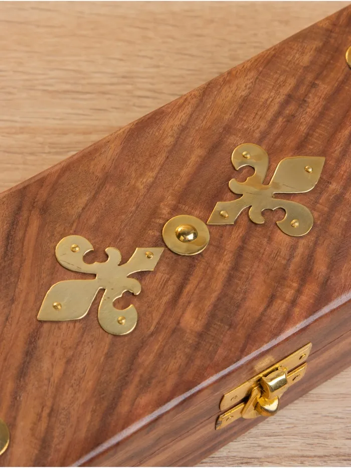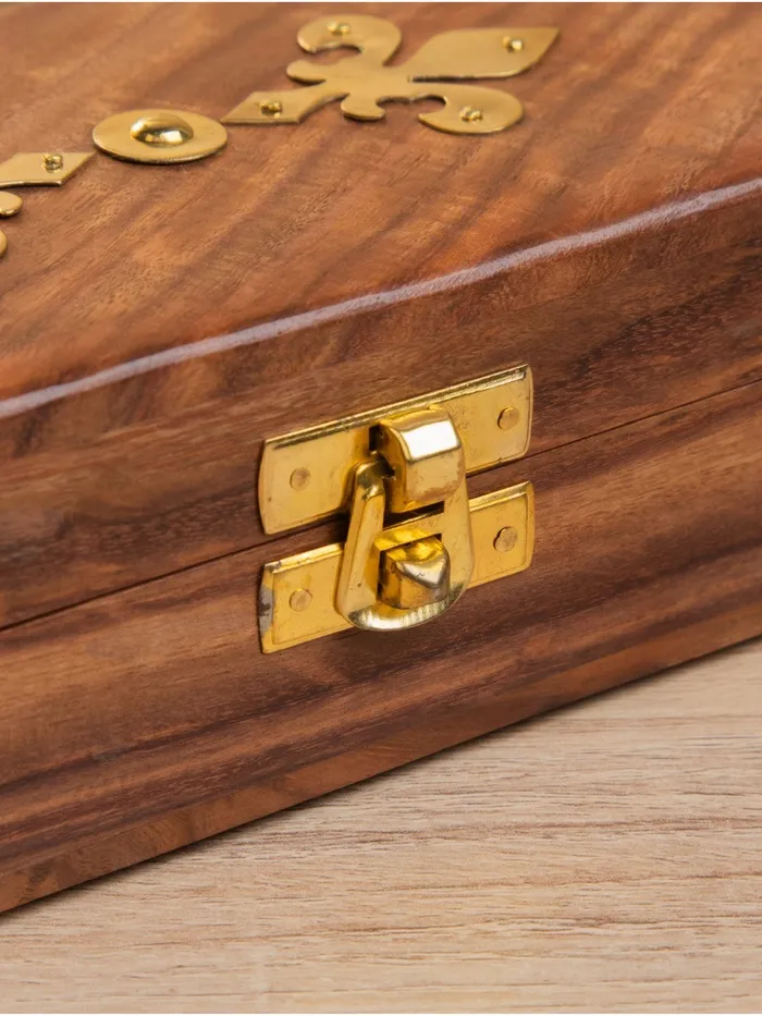 Шкатулка "Лилия" 20х8х5 см, дерево шишам, латунь — Характеристики