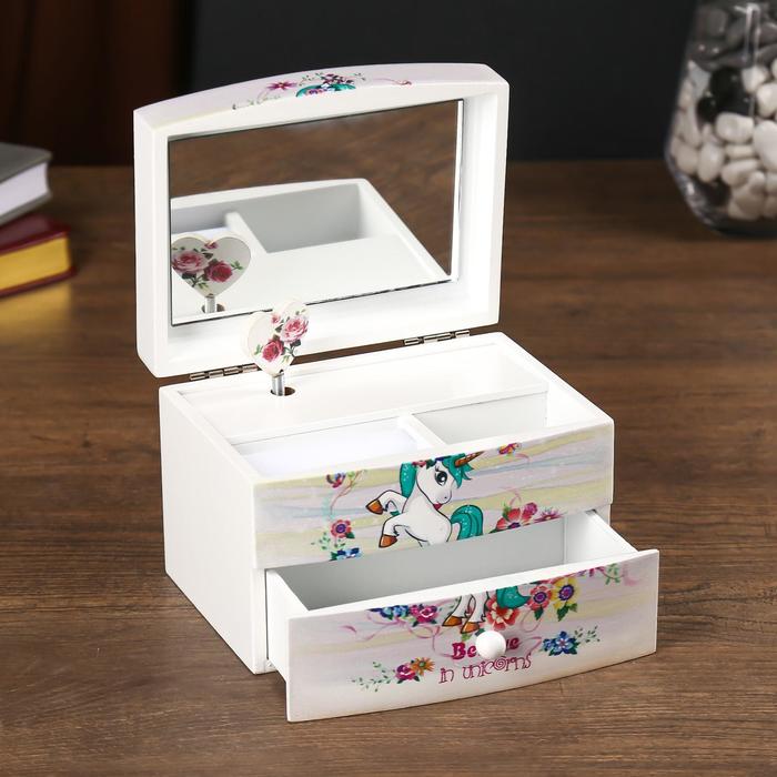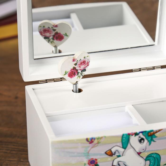 Шкатулка музыкальная 1 ящик «Комод. Единорог с подсолнухами», дерево, 9×10×13 см — Характеристики