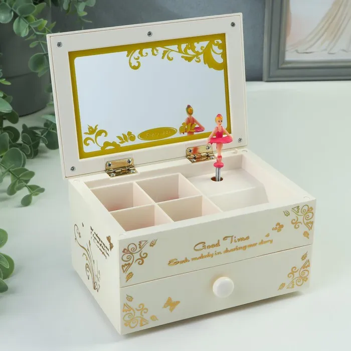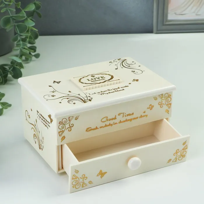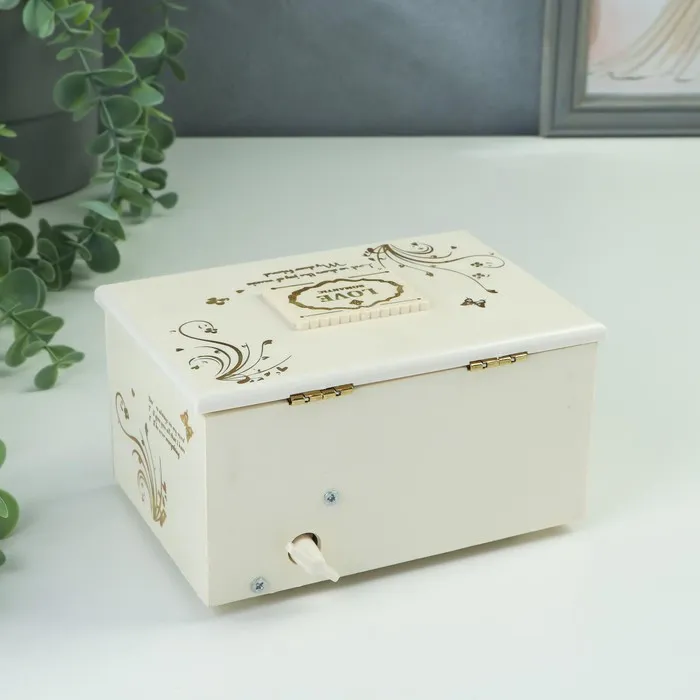 Шкатулка музыкальная механическая «Белый комод с золотым узором», пластик, 15.5×10.7×8.5 см — Характеристики