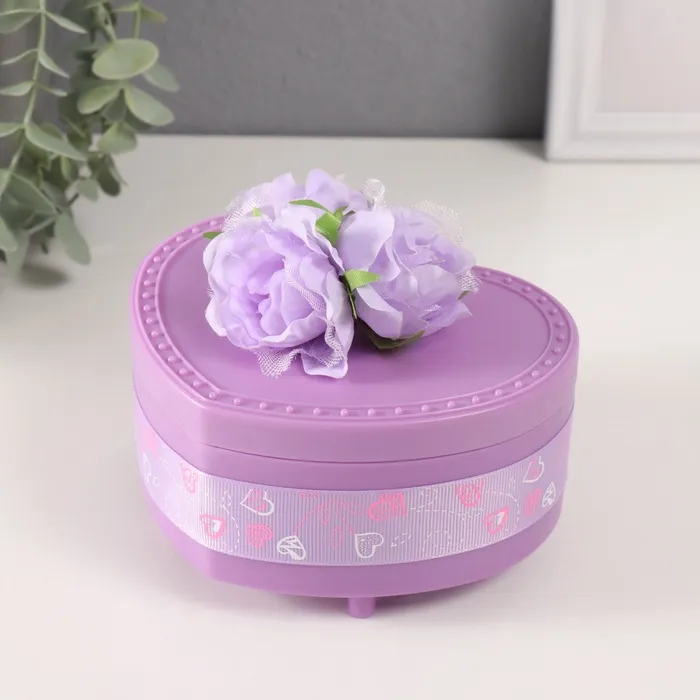 Шкатулка музыкальная механическая «Нежные розы», пластик, фиолетовая, 12×13.5×10.5 см