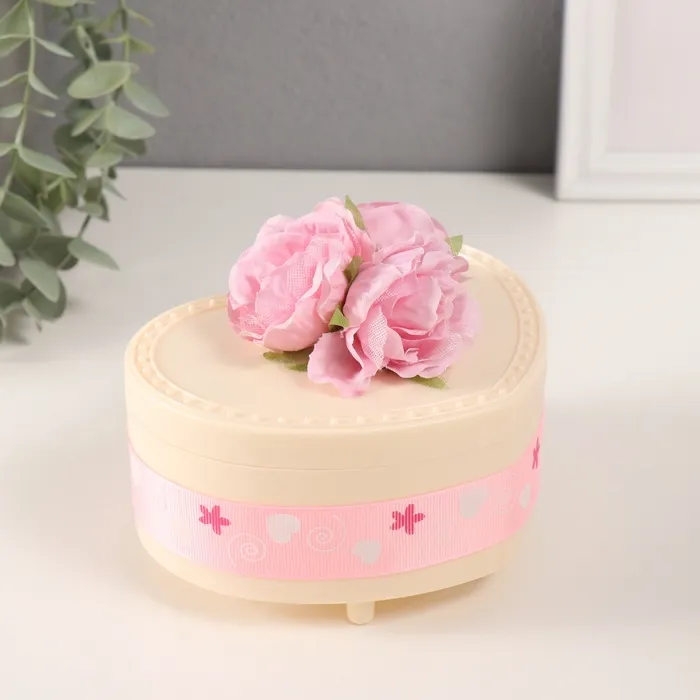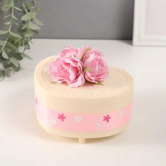 Шкатулка музыкальная механическая «Нежные розы», пластик, молочная, 12×13.5×10.5 см — Характеристики