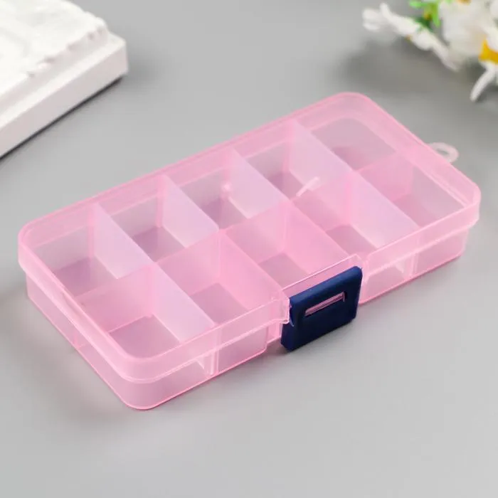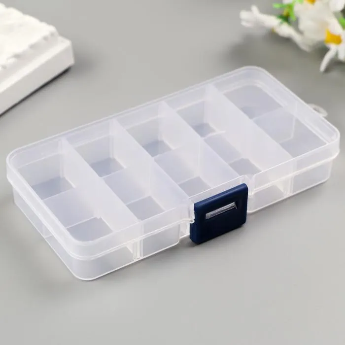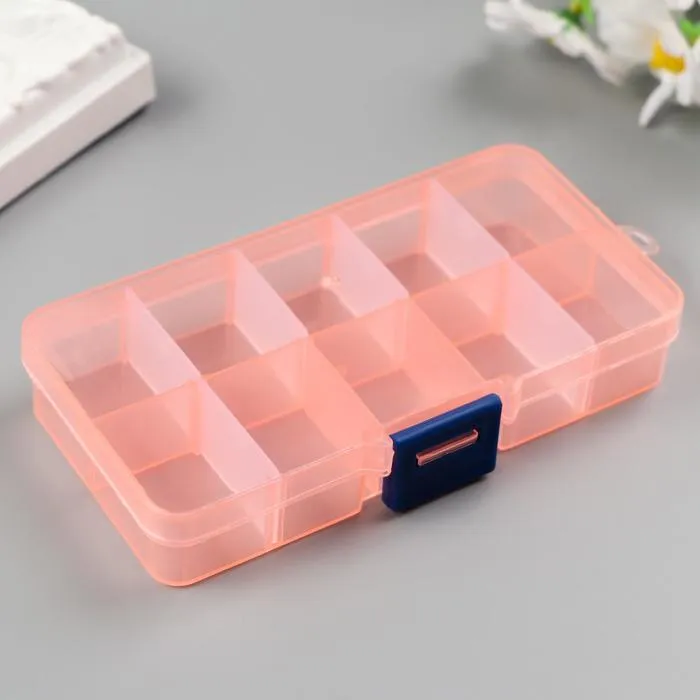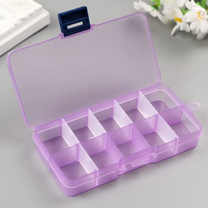 Шкатулка-органайзер для хранения мелочей со съёмными ячейками, 10 отделений, пластик, 2×12.5×6.5 см, МИКС — Характеристики