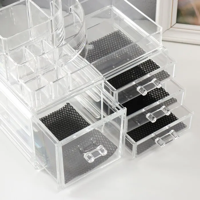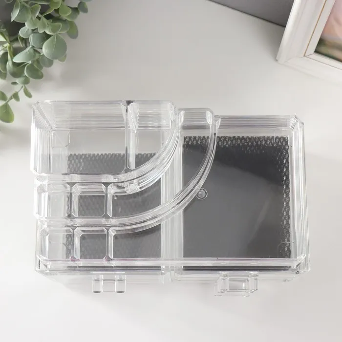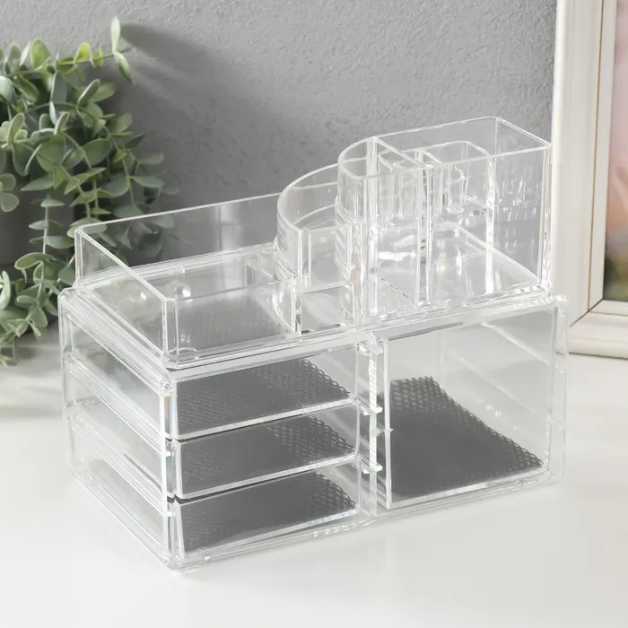 Шкатулка-органайзер для хранения мелочей, украшений 4 ящика, пластик, прозрачная, 19×14×24 см — Характеристики