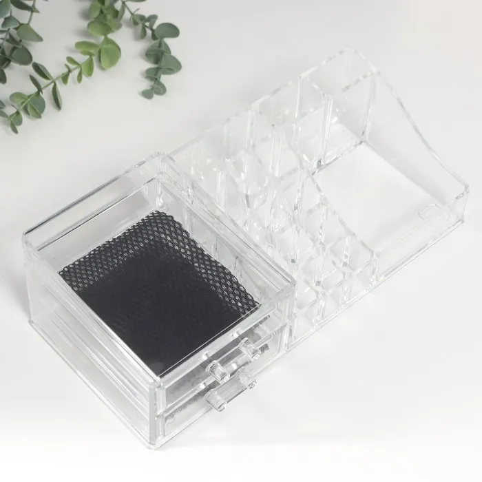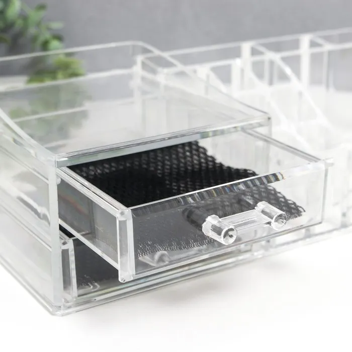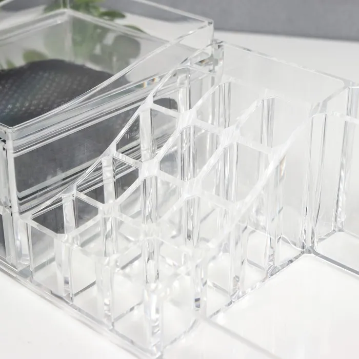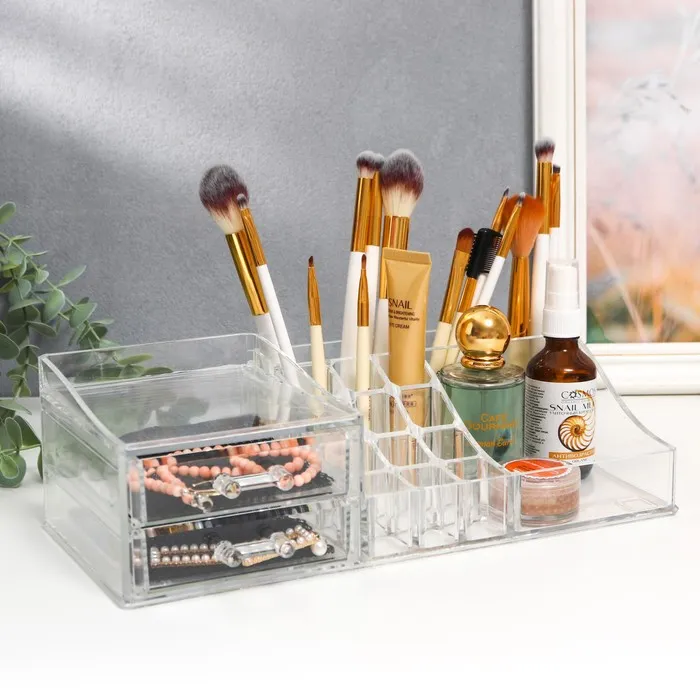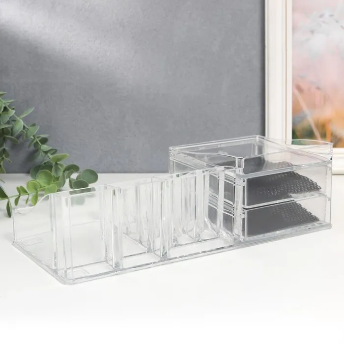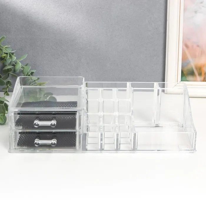Шкатулка-органайзер для хранения мелочей, украшений, косметики, пластик, 2 ящика, прозрачная, 9×15×30.5 см — Характеристики