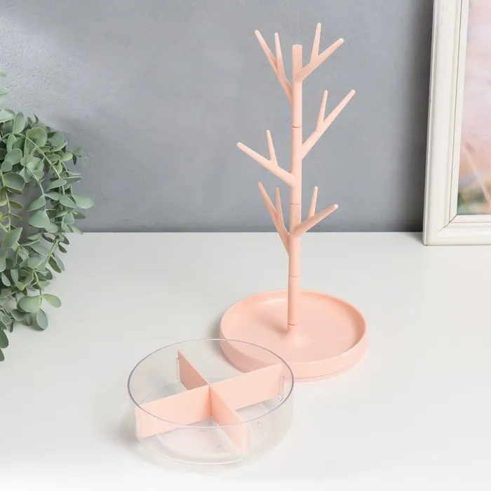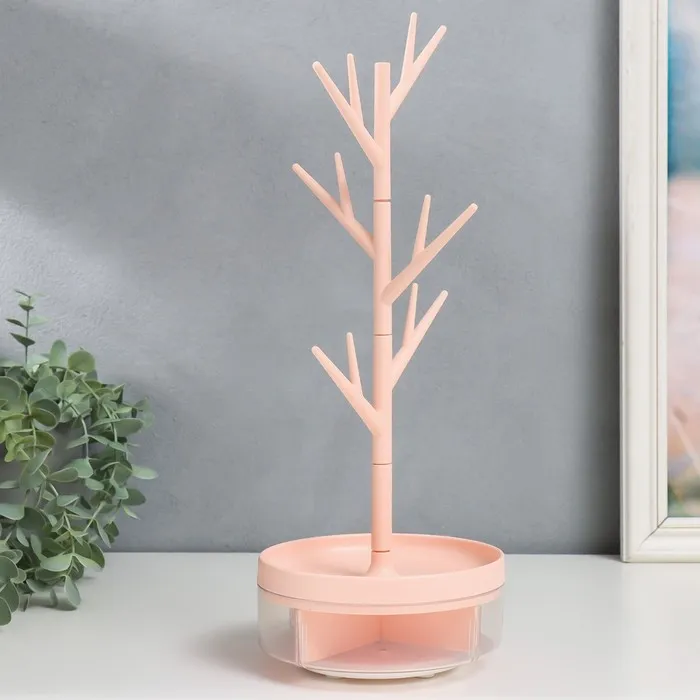 Шкатулка-органайзер для украшений на подставке «Деревце», пластик, розовая, 14×36.5×14 см — Характеристики
