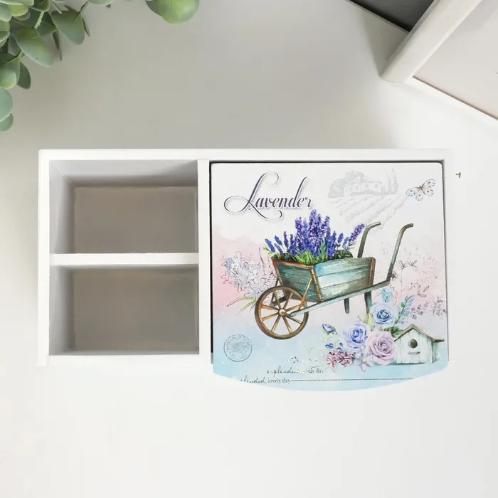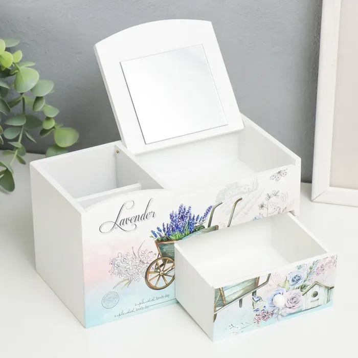 Шкатулка-органайзер для украшений «Тележка с лавандой», с зеркалом, дерево, 10.8×18.5×10 см — Характеристики