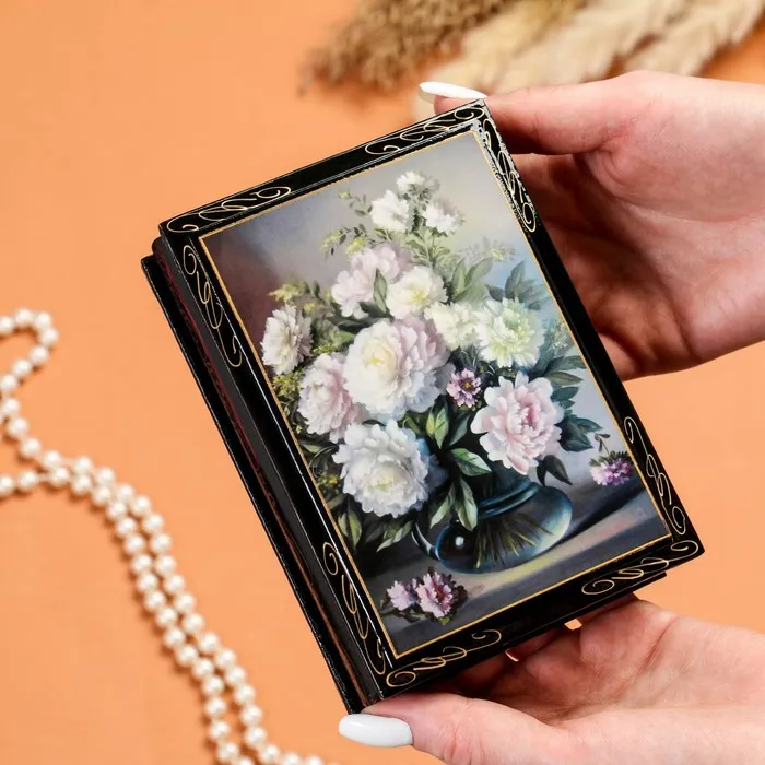 Шкатулка «Пионы в вазе», 10×14 см, лаковая миниатюра