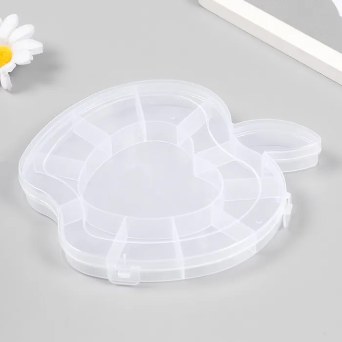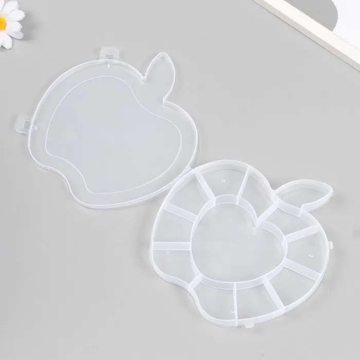 Шкатулка пластик для мелочей "Яблочко" прозрачная 12 отделений 16,5х15,5х2,5 см — Характеристики