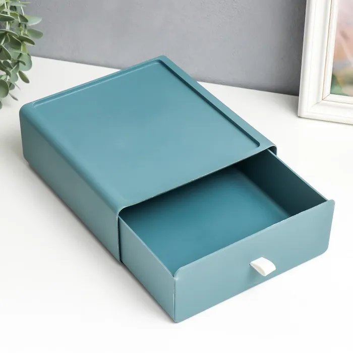 Шкатулка пластик "Ящик" серо-синий 19,5х18х5,8 см — Характеристики