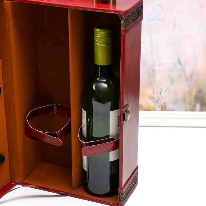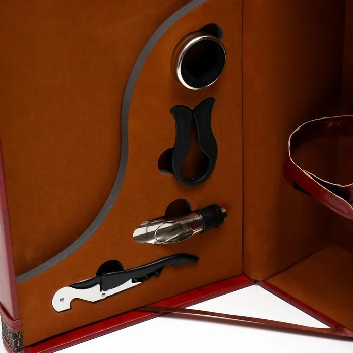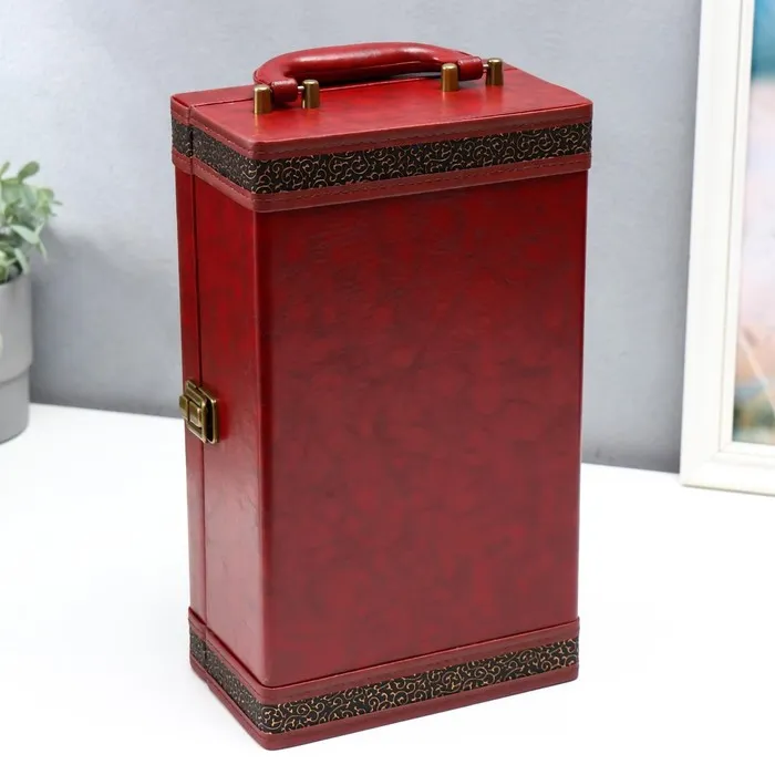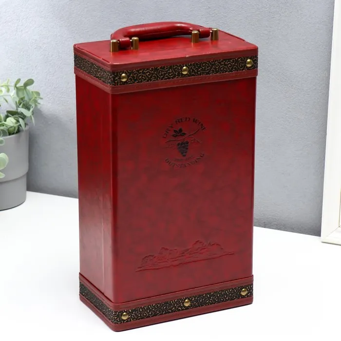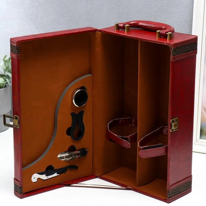 Шкатулка подарочная для 2 бутылок «Виноделие», дерево, искусственная кожа, 4 предмета, красно-коричневый, 35×12×20 см — Характеристики