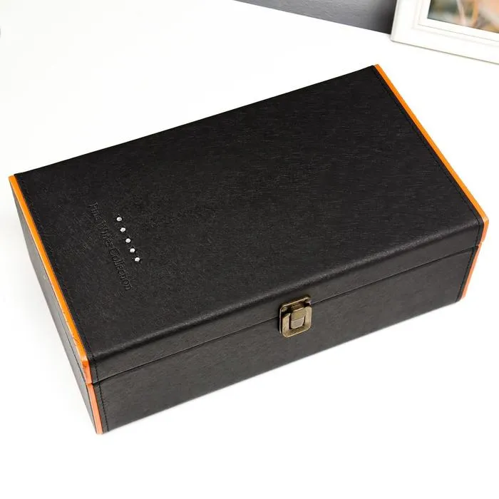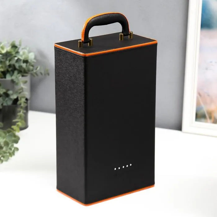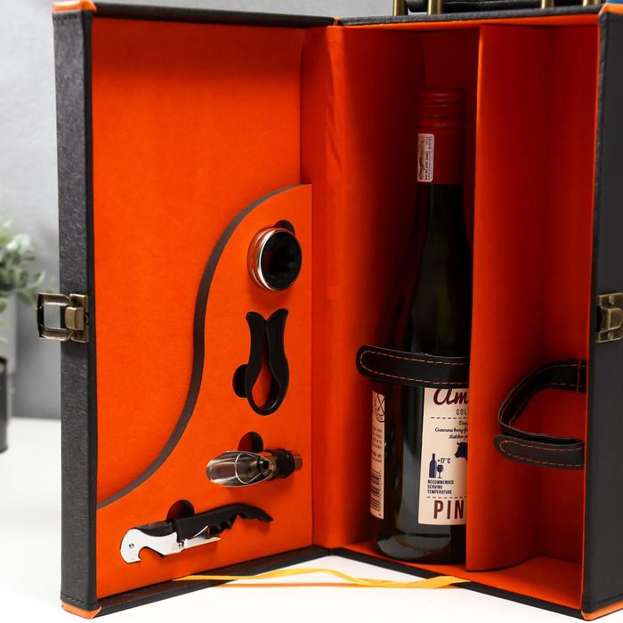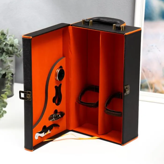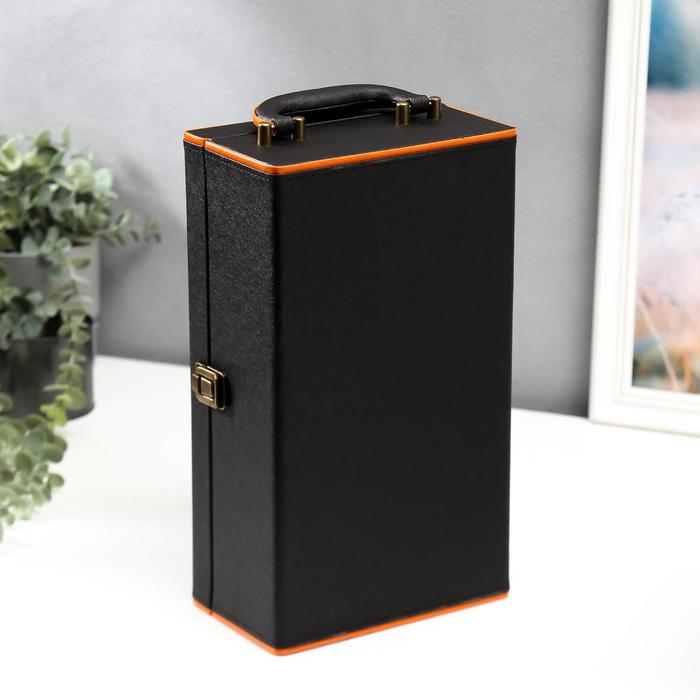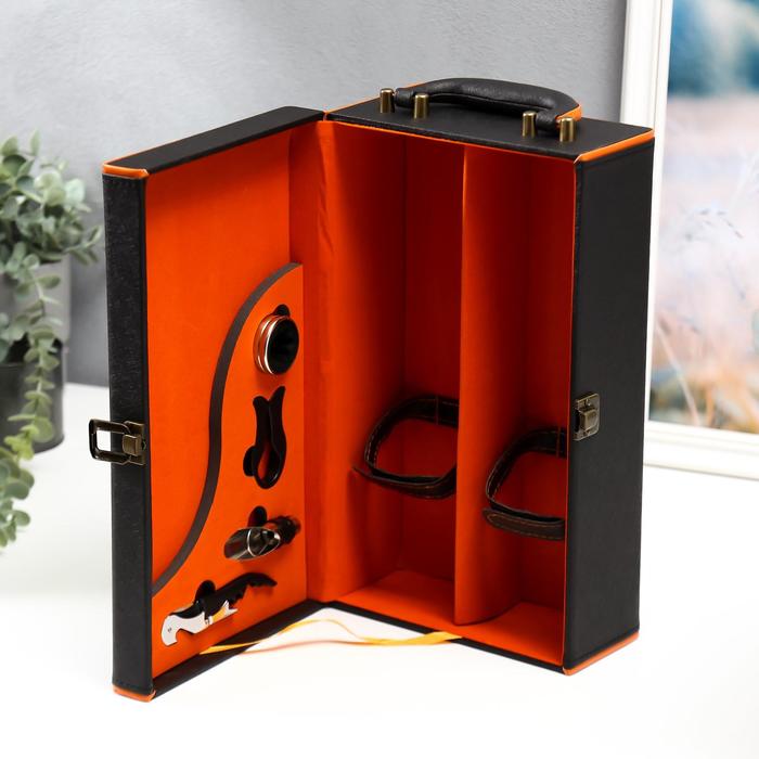 Шкатулка подарочная под 2 бутылки «Чёрная с оранжевой вставкой», дерево, искусственная кожа, 4 предмета, 34.5×20×12 см — Характеристики