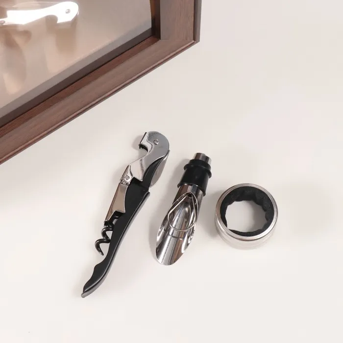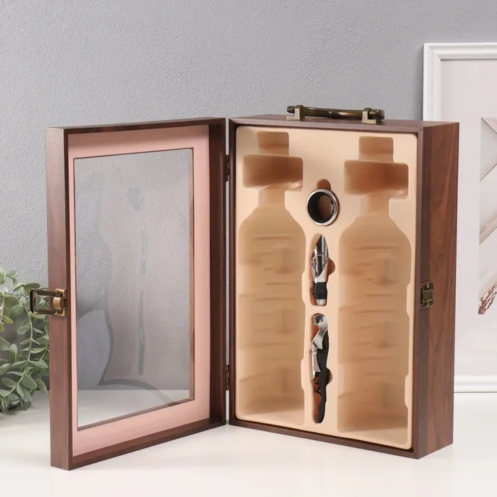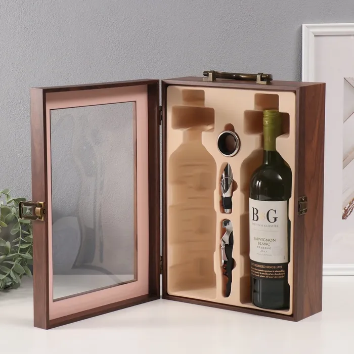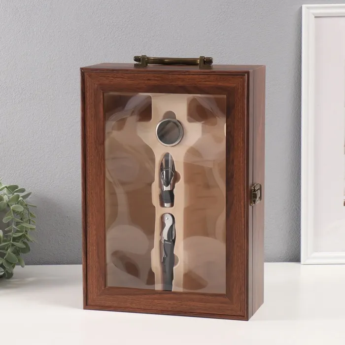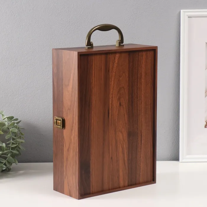 Шкатулка подарочная под 2 бутылки «Дуо», дерево, стекло, 3 предмета, 10.5×25.5×36.5 см — Характеристики