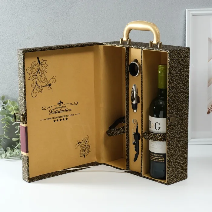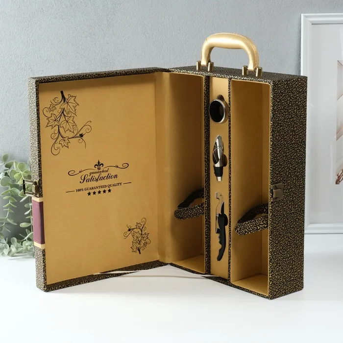 Шкатулка подарочная под 2 бутылки «Красное сухое», дерево, искусственная кожа, 3 предмета, 11.5×26×37 см — Характеристики