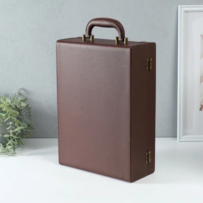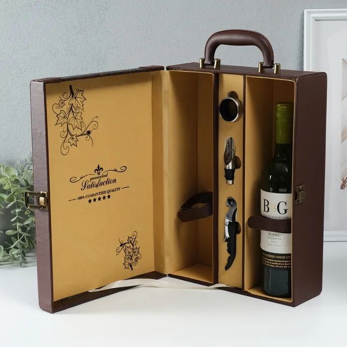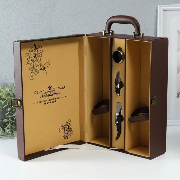 Шкатулка подарочная под 2 бутылки «Премиум», дерево, искусственная кожа, 3 предмета, 11.5×26×37 см — Характеристики