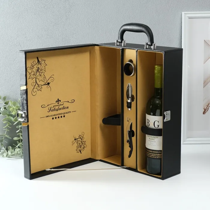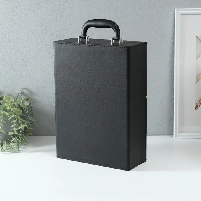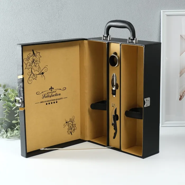 Шкатулка подарочная под 2 бутылки «Винтаж», дерево, искусственная кожа, 3 предмета, 11.5×26×37 см — Характеристики