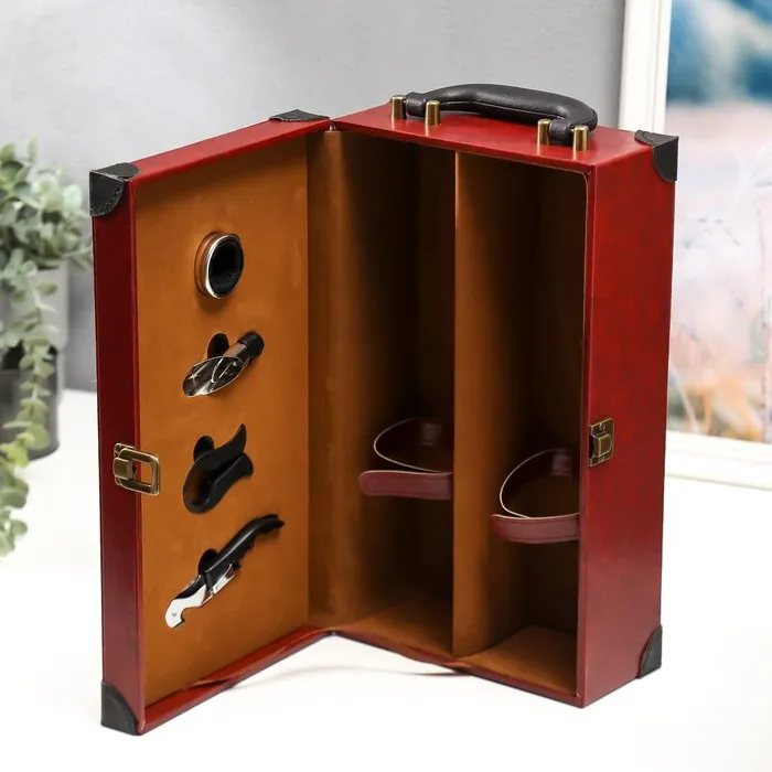 Шкатулка подарочная под бутылку «Бордо», дерево, искусственная кожа, 4 предмета, 35.5×20×12 см — Характеристики