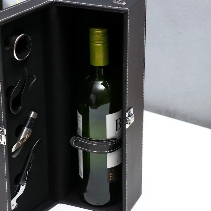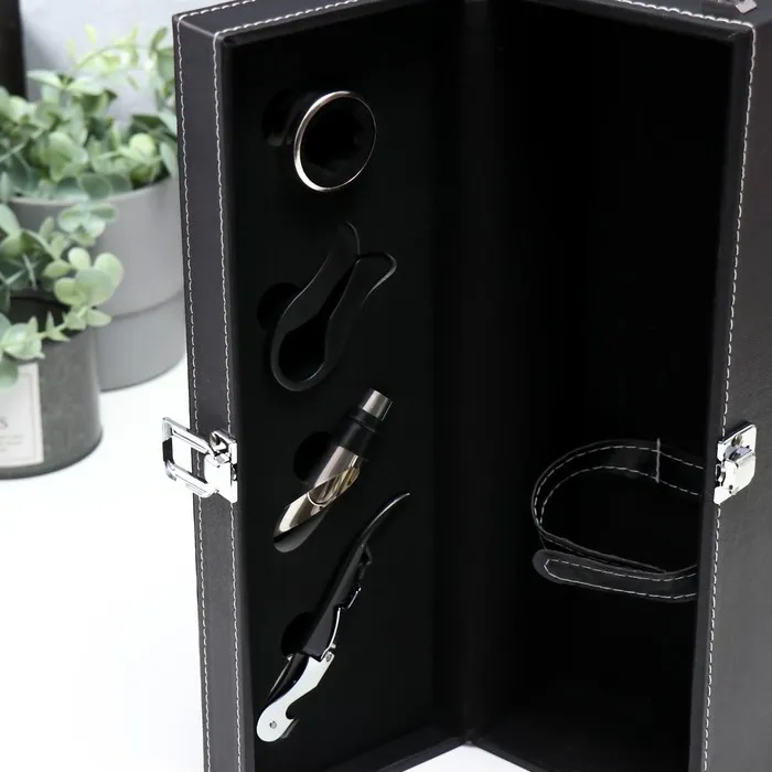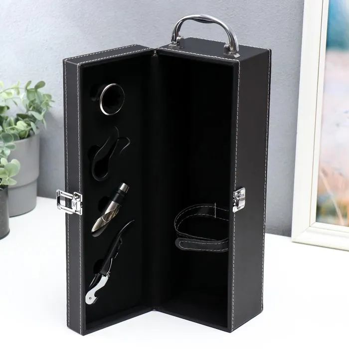 Шкатулка подарочная под бутылку «Гладкая кожа», дерево, искусственная кожа, 4 предмета, 36×11×12 см — Характеристики