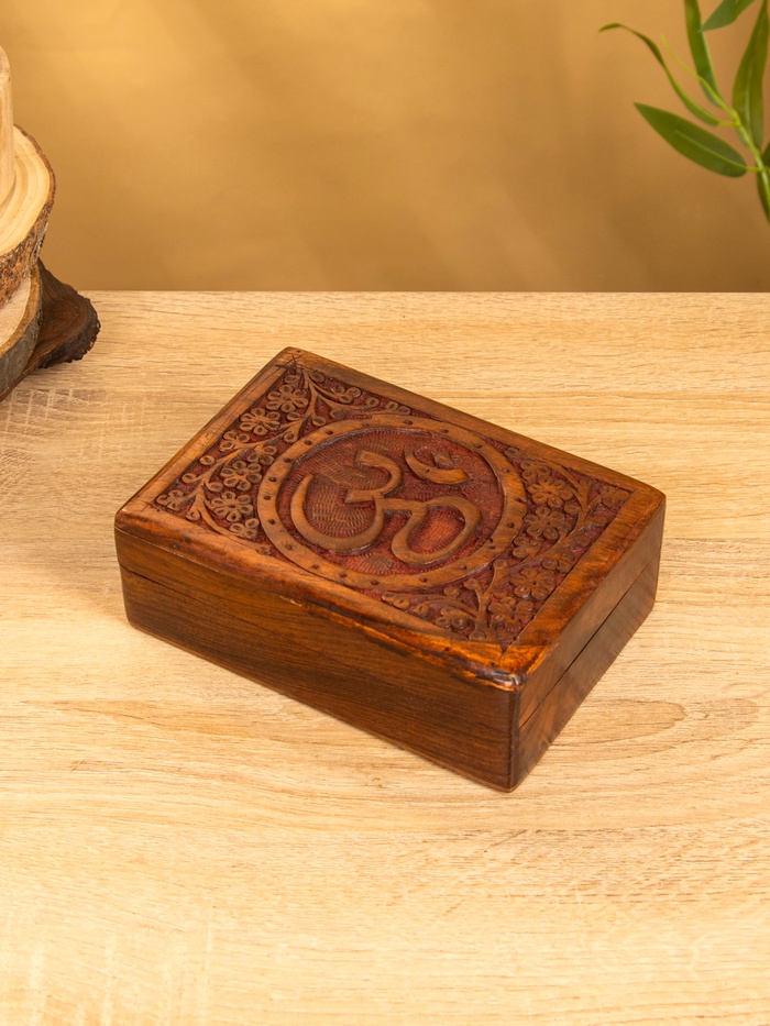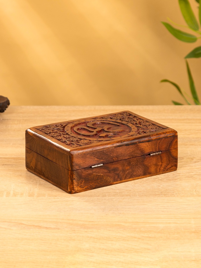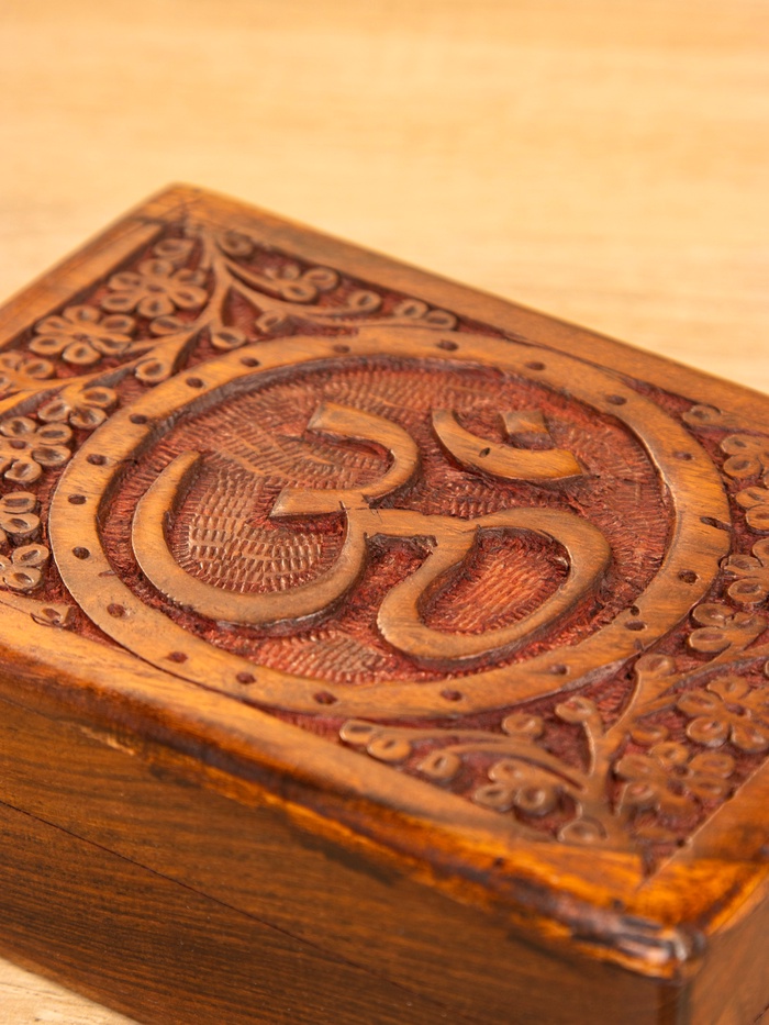 Шкатулка резная «Ом», 18×13×6 см, дерево шишам — Характеристики