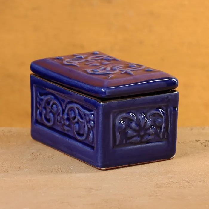 Шкатулка Риштанская керамика "Акташ" синяя, 12х7см — Характеристики