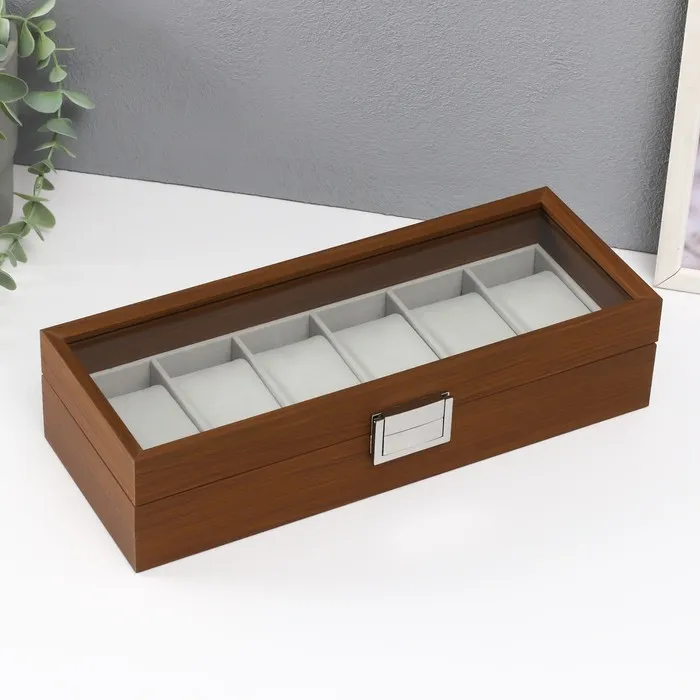 Шкатулка для часов 6 отделений «Коричневая», дерево, 8×31×11 см