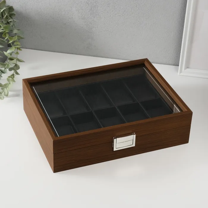 Шкатулка для часов 10 отделений «Дуб», дерево, с серебристой обводкой, 23×29.5×5.8 см