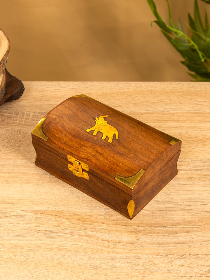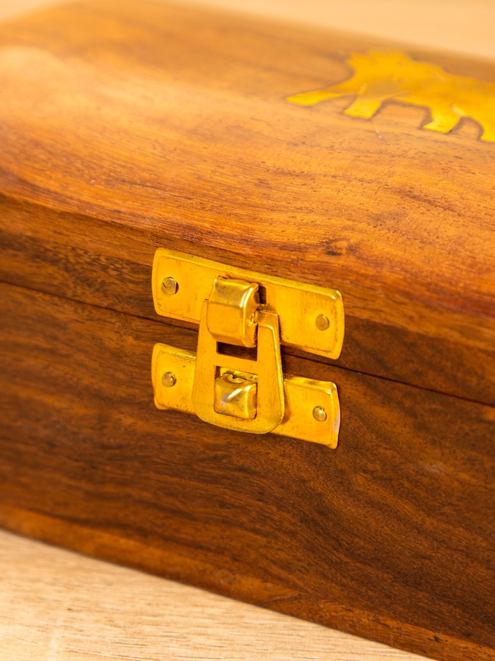 Шкатулка «Слон», 15.5×10×7 см, дерево шишам, латунь — Характеристики