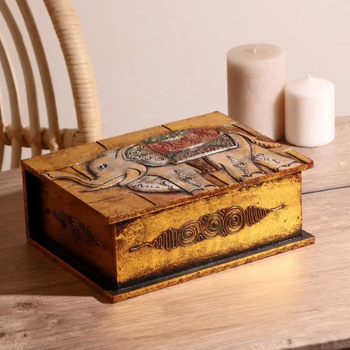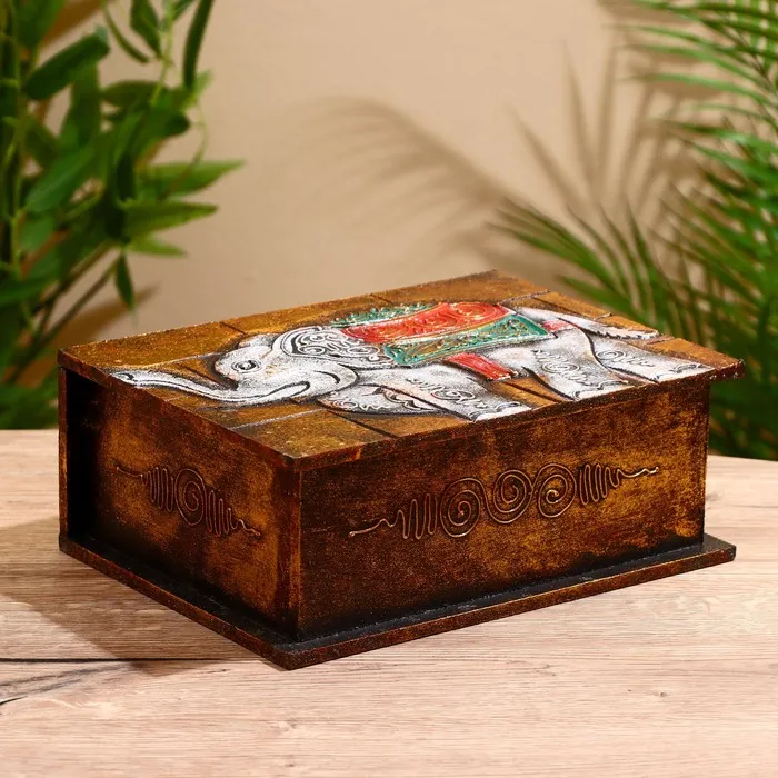 Шкатулка «Резной слоник», 15×10×6 см, дерево