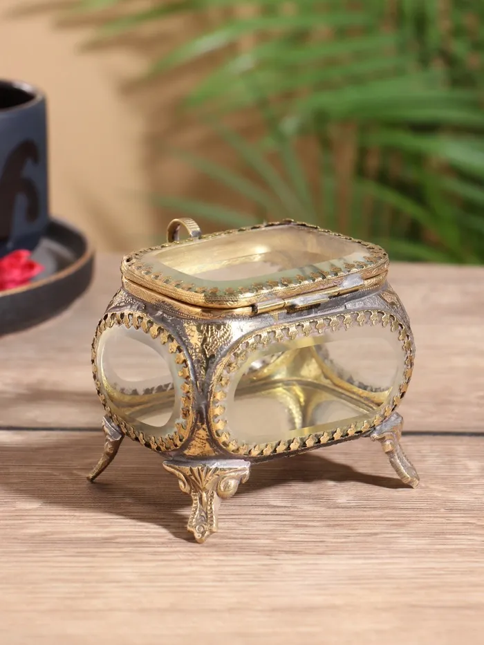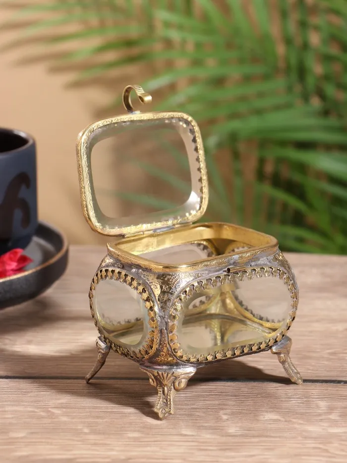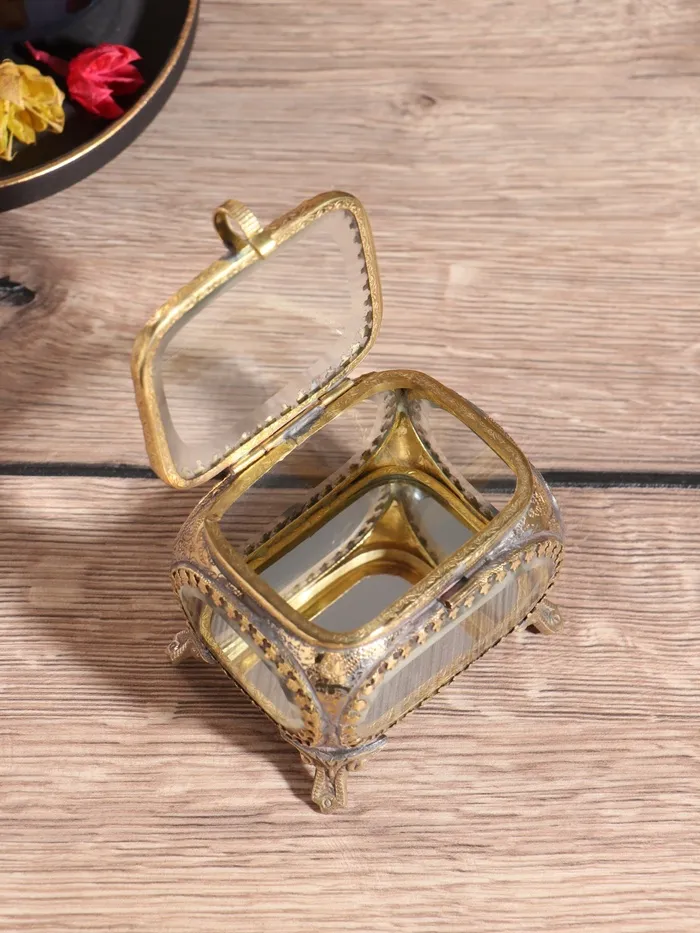 Шкатулка стеклянная «Сундучок», 8.5×7.5×8 см, латунь — Характеристики