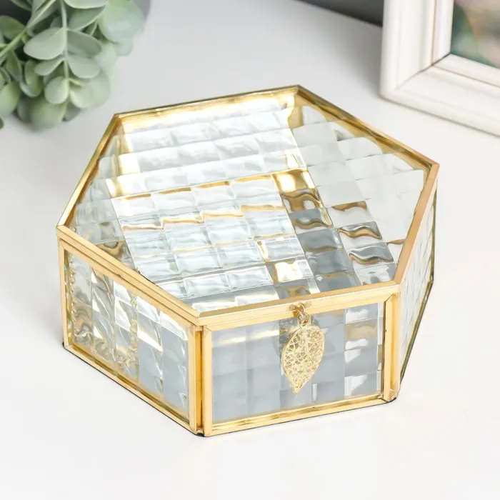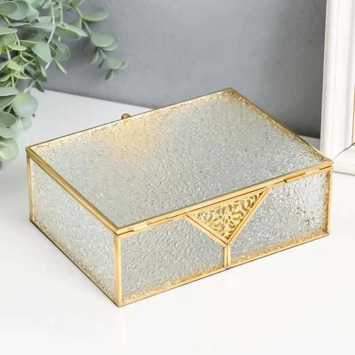Шкатулка стекло с металлическим каркасом "Ажурная вставка. Капли" 18,5х14х6,5 см — Характеристики