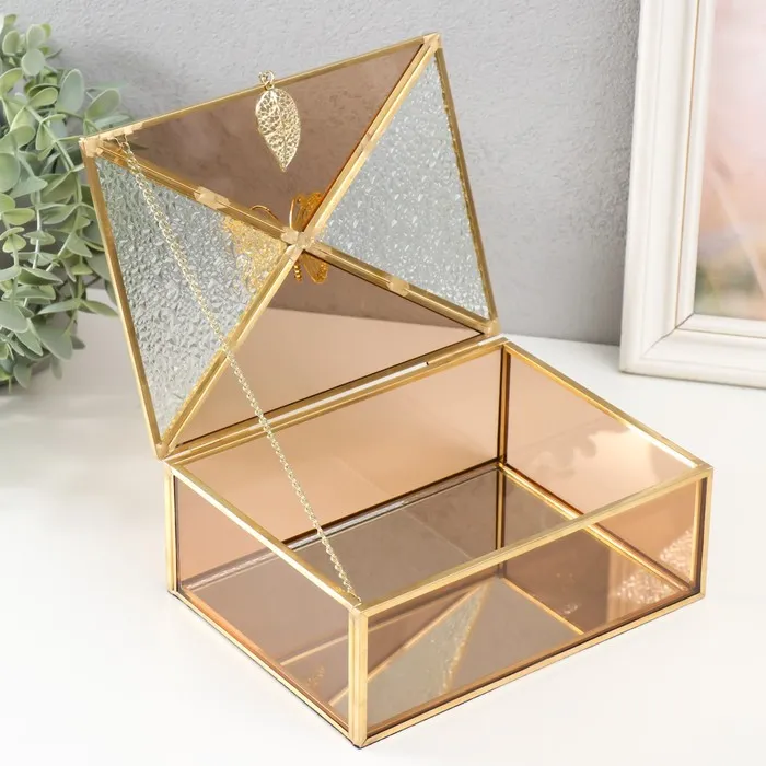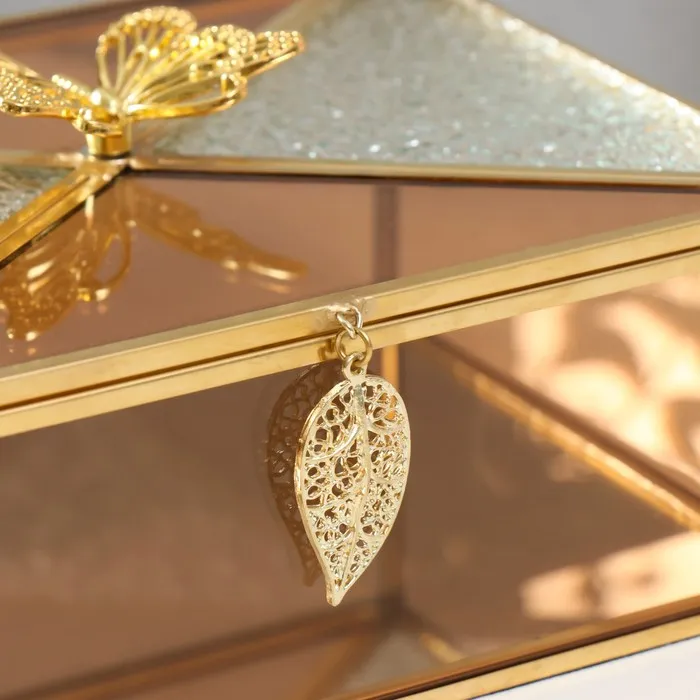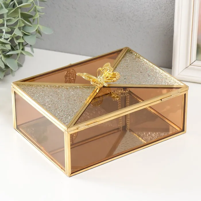 Шкатулка стекло с металлическим каркасом "Бабочка и лист" карамель 18,7х14,6х9 см — Характеристики
