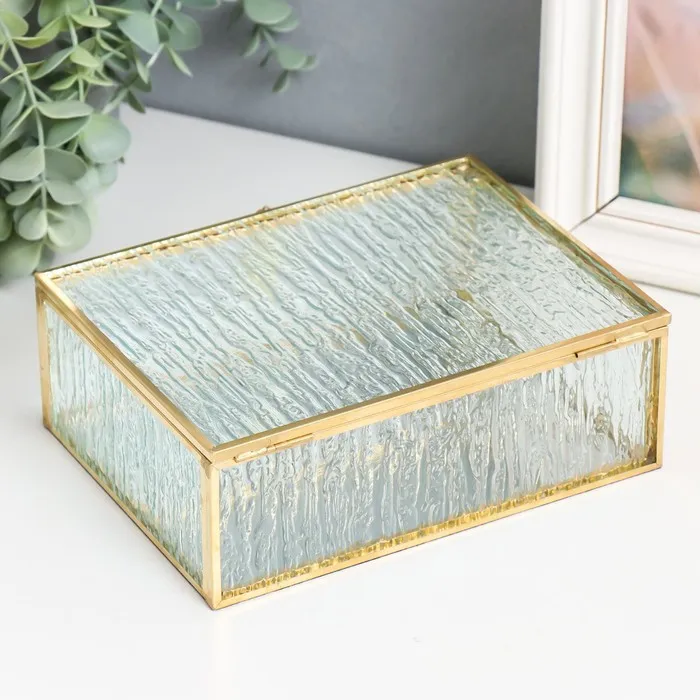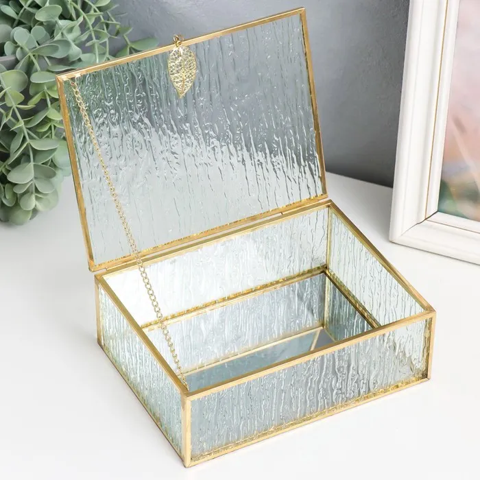 Шкатулка стекло с металлическим каркасом "Прямоугольная с листом. Кора" 18,5х14х6,5 см — Характеристики