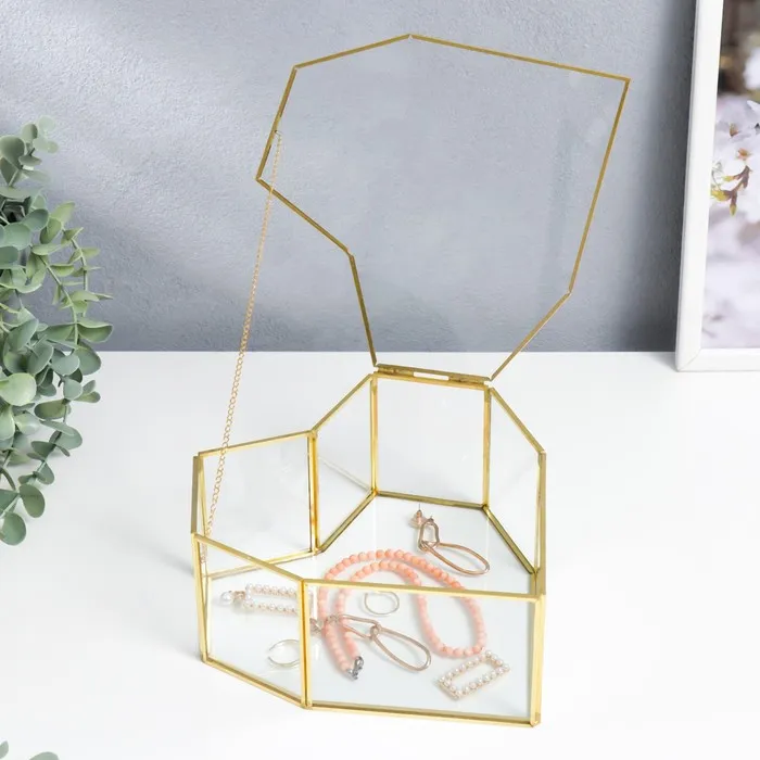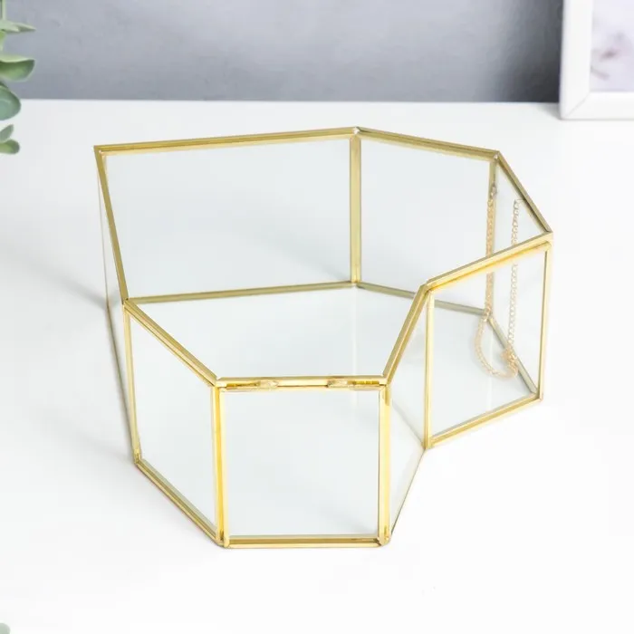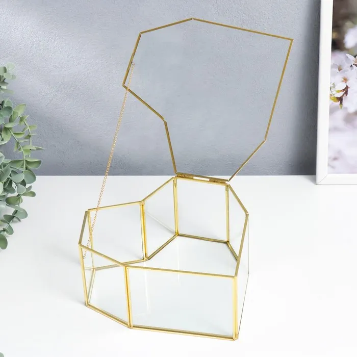Шкатулка стекло с металлическим каркасом "Сердце с гранями" золото 9,5х21х21 см — Характеристики