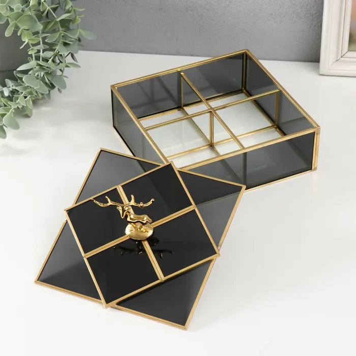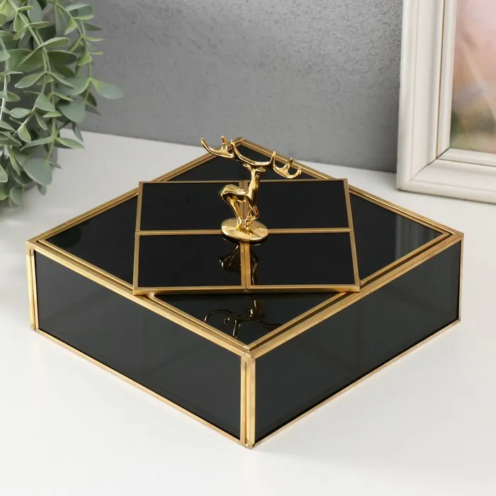 Шкатулка стекло с металлическим каркасом "Золотой олень" квадрат чёрная 17,2х18,2х12,8 см — Характеристики