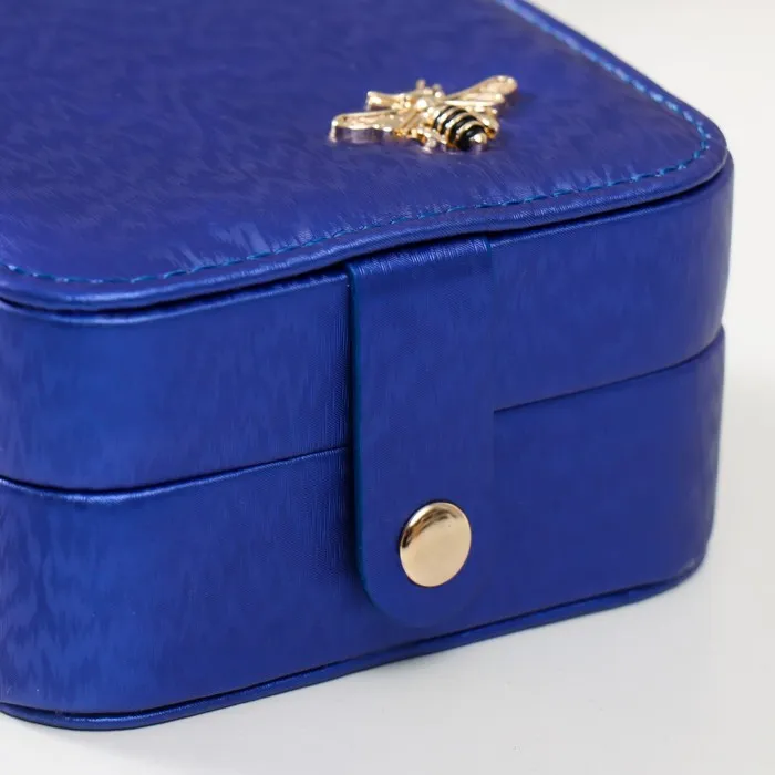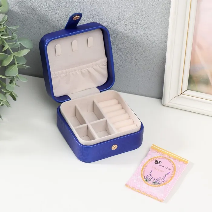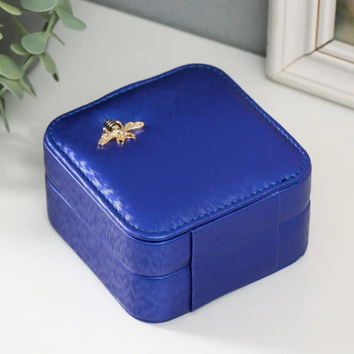 Шкатулка текстиль для украшений "Перелив с украшением" синяя 10х10х6 см — Характеристики