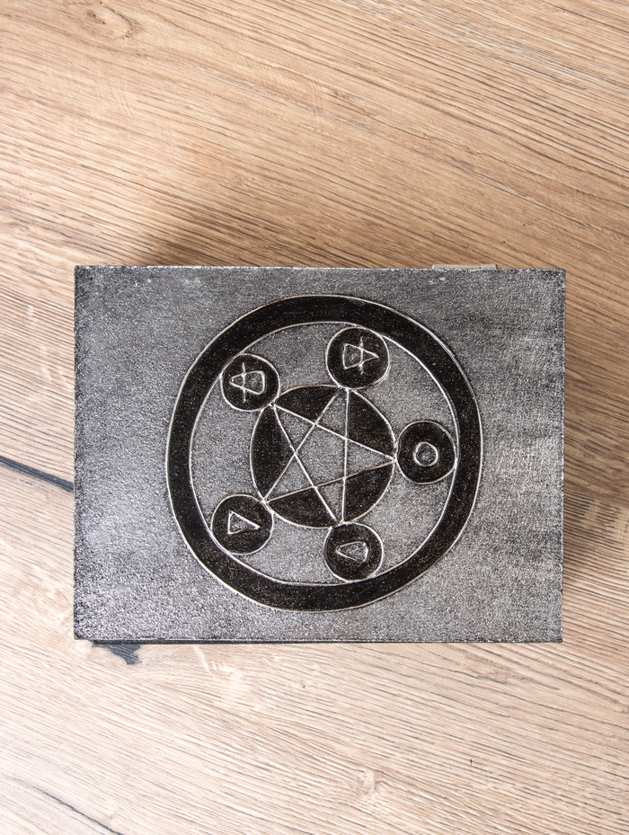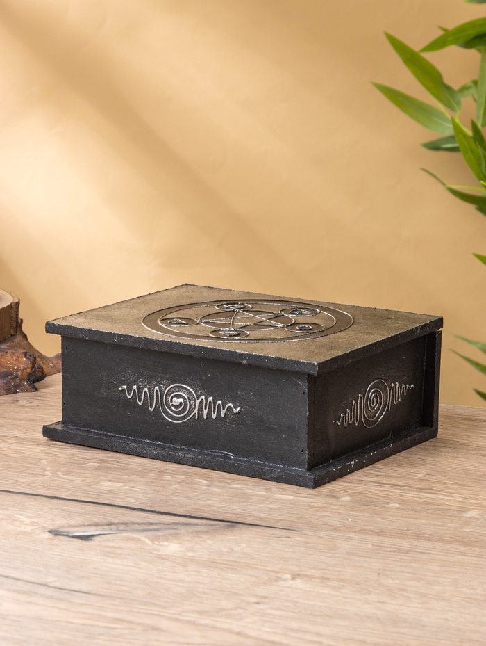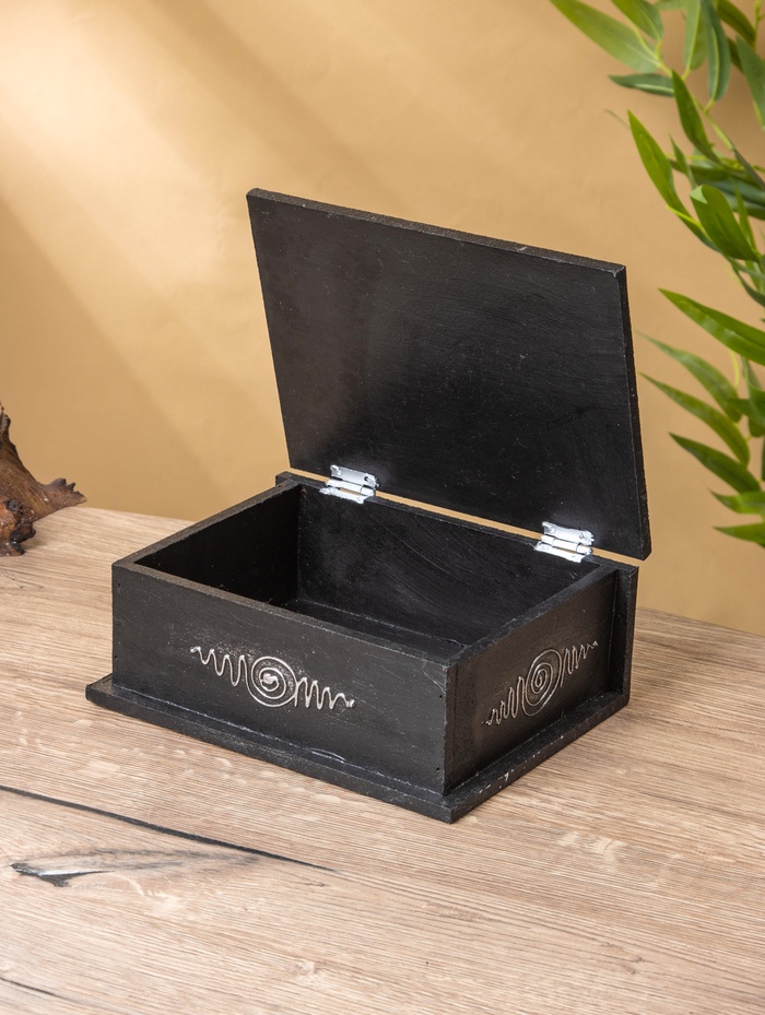 Шкатулка «Цветок жизни» — строгая чёрная коробка с глубоким символом на крышке, созданная для хранения самых личных мелочей. Выполненная из МДФ без покрытия, она сочетает лаконичность формы и философскую графику древнего орнамента, подходит как для украшений, так и для памятных записок.