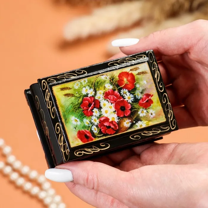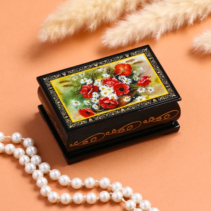 Шкатулка «Цветы», 6×9 см, лаковая миниатюра — Характеристики