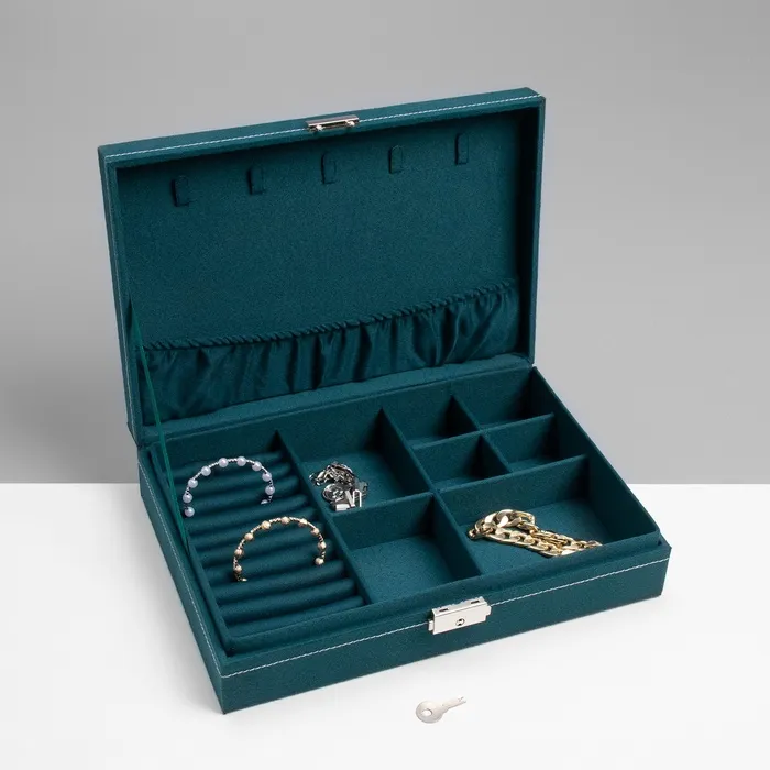 - Продуманная организация внутреннего пространства: деления позволяют удобно разместить разные виды украшений, предотвращая их спутывание.
