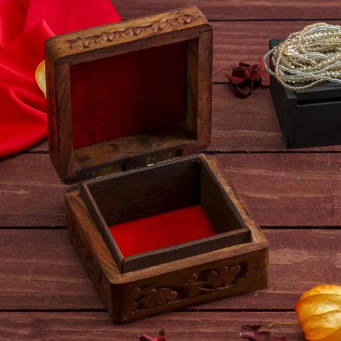 Квадратная форма и универсальный дизайн с тематикой узоров позволяют шкатулке гармонично вписаться в любой интерьер. Покрытие краской подчеркивает текстуру дерева, добавляя изделию изысканности. Этот аксессуар подходит для хранения украшений, аксессуаров, памятных вещей или даже небольших документов.