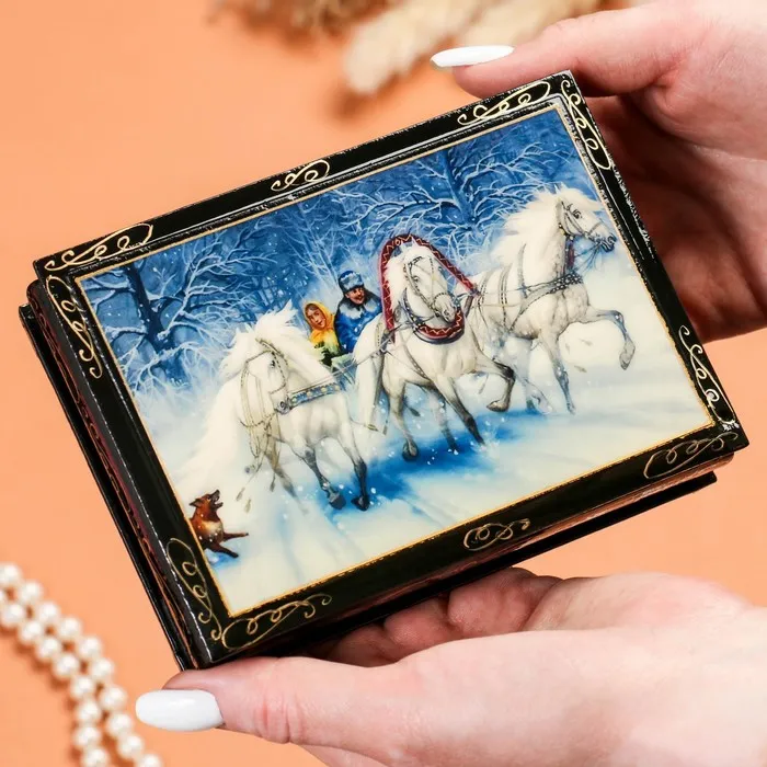 Шкатулка «Зимняя тройка», 10×14 см, лаковая миниатюра — Характеристики