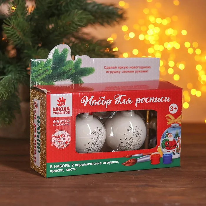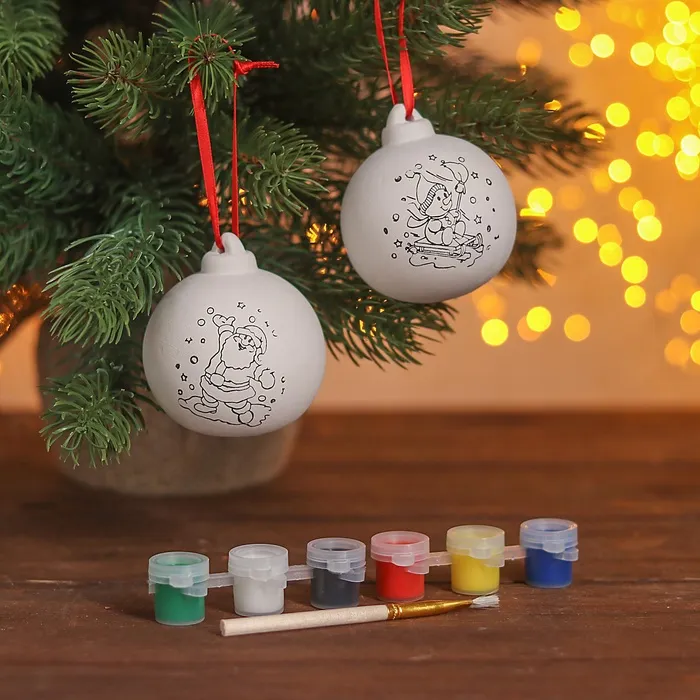 В набор входит:4 гипсовые подвески-основы, 6 акриловых краски и кисть.