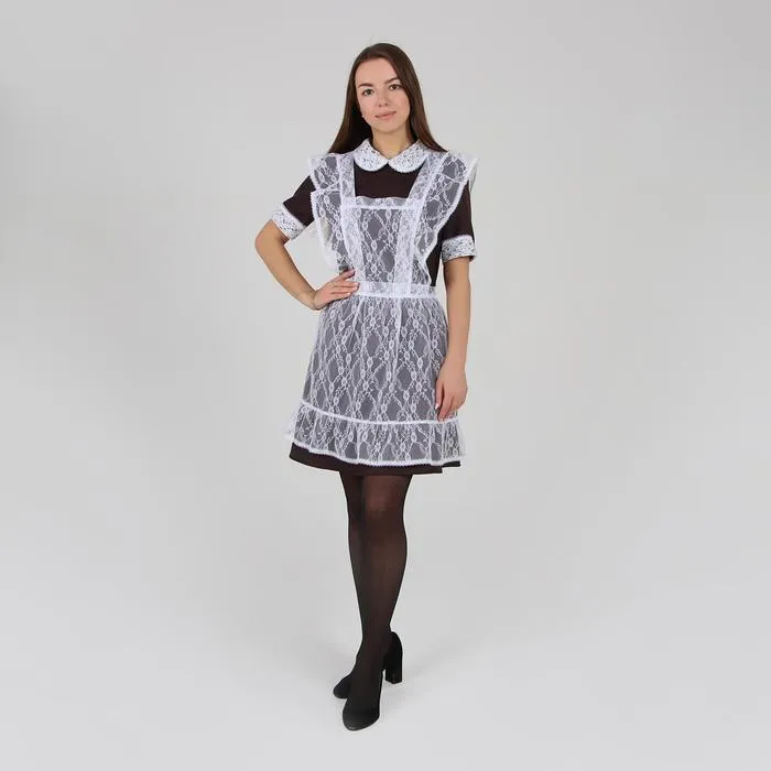 Школьный фартук на выпускной, гипюр, мелкие цветы, р. 42-50, белый + набор шаров 5 шт. — Характеристики