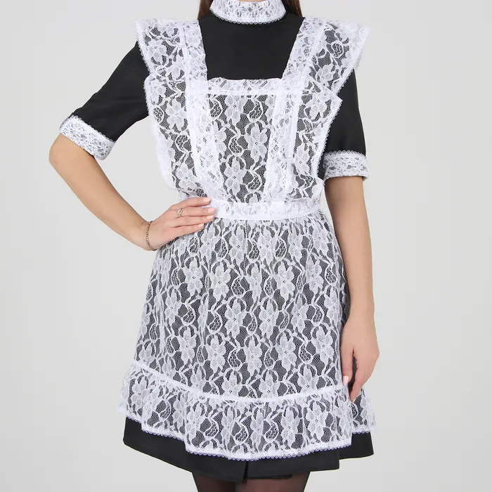 Фартук с воланом по бретелям и низу из гипюра с цветочным узором отличается элегантным дизайном. Он подчеркивает индивидуальность девочек, придаёт наряду неповторимый вид. Благодаря оригинальным деталям, каждая школьница почувствует себя особенной.