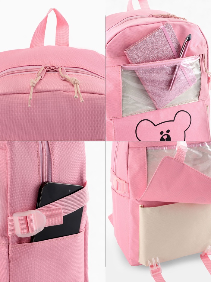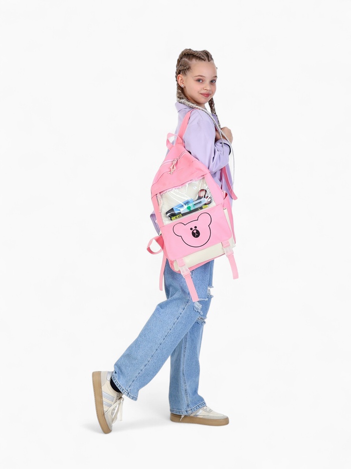 Школьный набор 5 в 1: рюкзак, шопер, сумка, пенал, мешочек для монет, розовый — Характеристики
