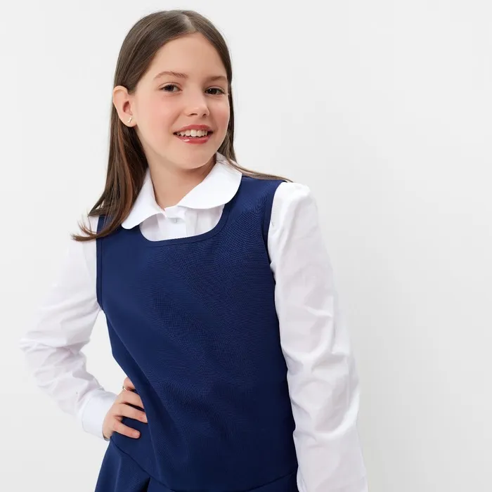Школьный сарафан для девочки, рост 128-134 см, цвет синий